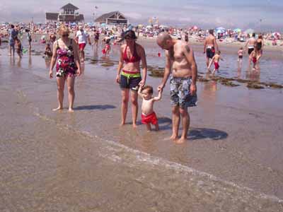 Nancy and Leah and Adam with Sammy at the ocean.