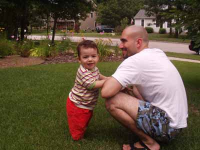 Adam and Sammy in our front yard.