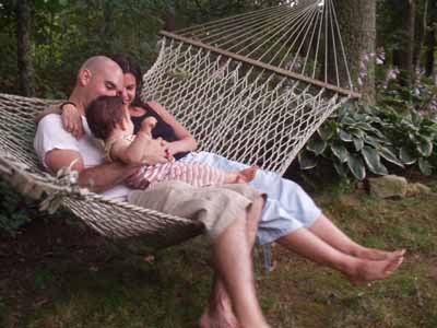 Adam and Leah in my hammock with Sammy.