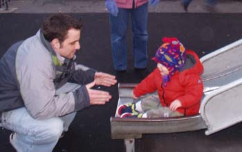 geezer. And then you see Adam and Jill preparing Sam to go down a slide...