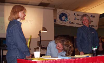 Nancy competed in a Spelling Bee last night. It was a fund-raiser for SK-CARES The "SK" is for our town and the "CARES" is for "Connecting All Resources for Educational Support" (yes, probably another one of those acronyms where they came up with the acronym first and then tried to pick words that would spell it out) which is an organization that promotes educational activities in connection with the school system, working to promote literacy and mentoring and enrichment.