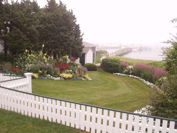 A typical scene in Edgartown -- beautiful flowers and marvelous old houses. |
