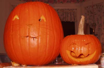 Yes, yes, I know, those are carved pumpkins for American-style Halloween, but Halloween and Guy Fawkes Day come so close together on the calendar... besides which, I've been so neglectful of this page these past few weeks that I didn't post a Halloween entry and Jill had carved these pumpkins and so this is my chance to post them here.