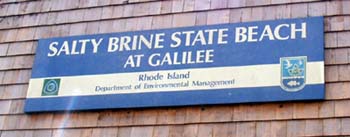The beach is Salty Brine State Beach, named for Rhode Island's beloved radio and TV host, the late Salty Brine (1918-2004). It is located next to the entrance to Point Judith Pond (with docks for the local fishing fleet, the Block Island Ferry, and numerous pleasure boats). (Google satellite view) This is also the location for the annual Blessing of the Fleet.