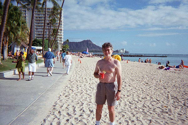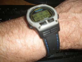 You see, several weeks ago the wristband on my wristwatch broke and I've not been able to wear it. Oh, sometimes I would remember to stick it in a pocket, but mostly I was going around without a watch. Watchbands tend to last me about a year and then they break and I have to replace them. Usually I would go to a shop in Middletown -- over on Aquidneck Island -- but, of course, since my employer closed our Middletown office, I've rarely gone across the bridges. There was a watch store in town here that I have sometimes used -- The Providence Watch Hospital -- but their parent company went out of business and they closed their stores. I kept hoping I would be able to find some excuse to drive to Middletown during normal business hours (hey, it would be rather silly to make a 42 mile round trip, including crossing a toll bridge twice, just to buy a watch band). Then, Friday night I read an article in the South County Independent (a local weekly newspaper) saying that someone had bought the Providence Watch Hospital stores (or, at least the local one) and had reopened it. I wish I had read the paper on Thursday when it had been delivered so I could have had my watch fixed on Friday, but I hadn't gotten to that story until Friday night and, of course, on Saturday we went into New York City. But at lunchtime on Monday I dashed into town to get a new watch band. "Closed Sundays and Mondays." And then, of course, I forgot about it on Tuesday. (Duh!) But today I dashed again and now my watch is back on my wrist again. I bought this watch eleven years ago -- actually eleven years and just a few days. I was in Honolulu for not quite two weeks on business. I had a sports watch (digital watch with stop watch function, etc.) and it was supposed to be water resistant but (probably due to being treated roughly for years) I think it had started to develop a leak because the crystal would be steamed over on the inside after being worn while taking a shower, but then would dry out after a few hours. So I was relaxing by the pool at my hotel and decided to swim a few laps. When I got out, I looked at my watch to see what time it was (although I think I was over my jet lag by then, the difference in daylight was still disorienting -- where sunset at this time of year in Rhode Island is about 4:15 local time, in Honolulu it was about ten minutes before six p.m.) and my digital watch face was totally blank, no numbers at all. It didn't recover overnight, so the next day I went to a Sports Authority store and bought a Timex Ironman Triathlon digital sports watch. And I've worn it ever since.... I've become quite attached to it. Not only has it been a good time piece and a good stop watch for timing runs and bike rides and such, but it also reminds me of that time in Honolulu.